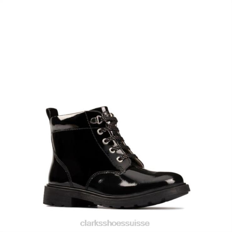 Clarks Astrol Lace Enfant Noir Verni Noir Verni enfants N6R8B5755 Clarks vernis noir