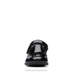Clarks Crown Wish Inf F Fit Noir Verni enfants N6R8B4642 Clarks vernis noir