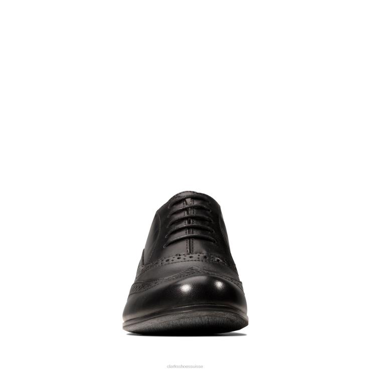 nos brogues pour femmes les plus vendues dans un cuir noir classique. un laçage authentique et des détails de broguing perforés ajoutent au look haut de gamme qui est fini avec un talon plaqué effet empilé et avec notre technologie unique Clarks Cushion Plus.