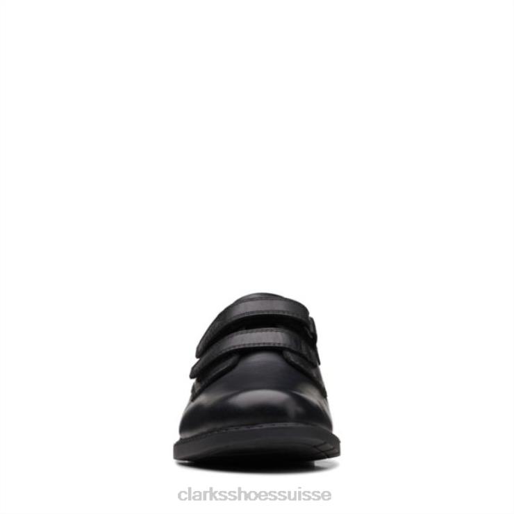 Clarks cuir noir Scala Pace cuir noir plus ancien enfants N6R8B5945 Clarks Cuir noir