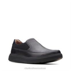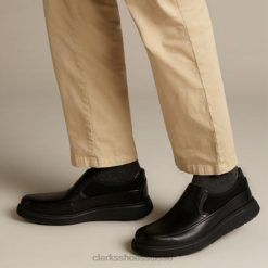Clarks Black Oily Lea Mocassins Cotrell Step pour hommes Hommes N6R8B217 Clarks feuille noire grasse
