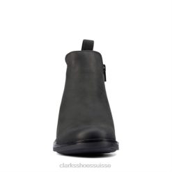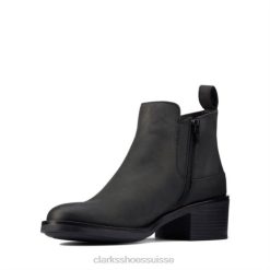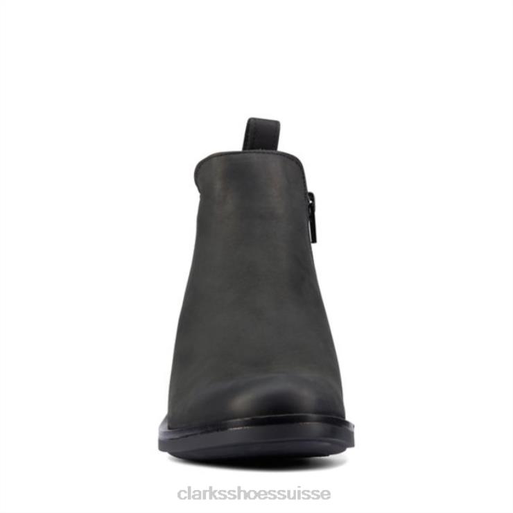 un talon épais contemporain ajoute une touche tendance à la bottine polyvalente memi zip. combinant un cuir noir luxueux avec le confort profond d’un coussin et d’une assise plantaire