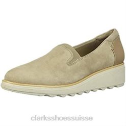 mocassins plats haley rose clarks en daim sable pour femmes femmes N6R8B2251 Clarks daim sable
