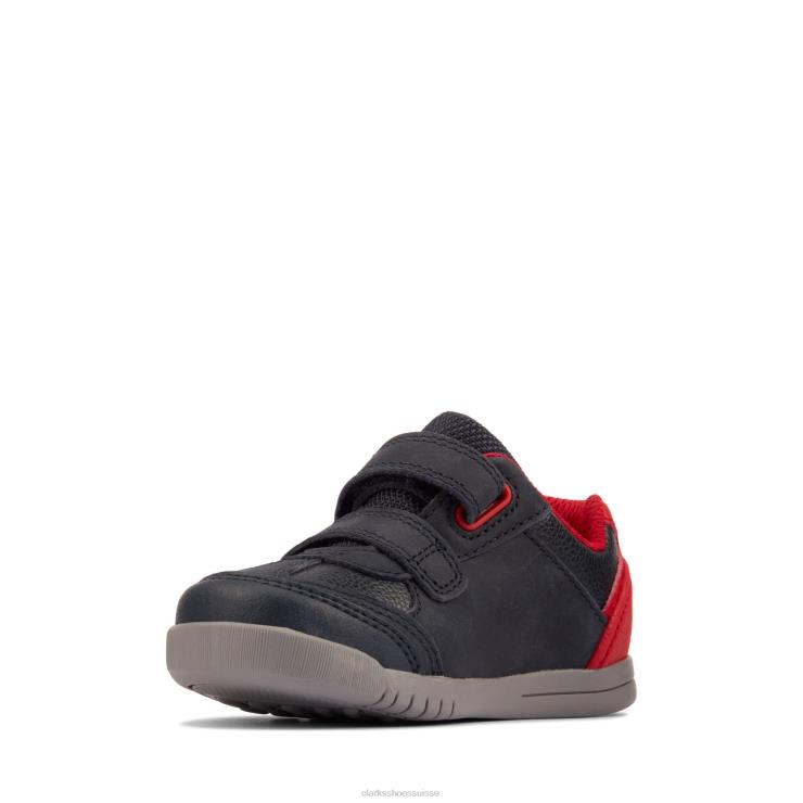 Clarks Rex Play T en cuir bleu marine/rouge enfants N6R8B3840 Clarks cuir bleu marine/rouge