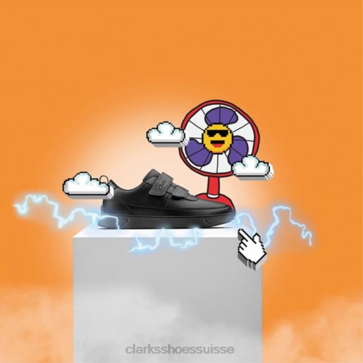 Clarks Vibrant G Low Kid en cuir noir en cuir noir enfants N6R8B5851 Clarks Cuir noir