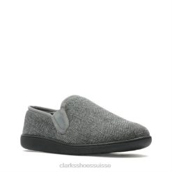 Les pantoufles intemporelles de tous les jours créent une silhouette minimaliste mais confortable dans une tige en textile gris foncé tactile. les panneaux élastiqués aident cette paire à s’enfiler et à s’enlever facilement