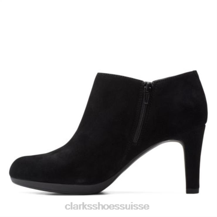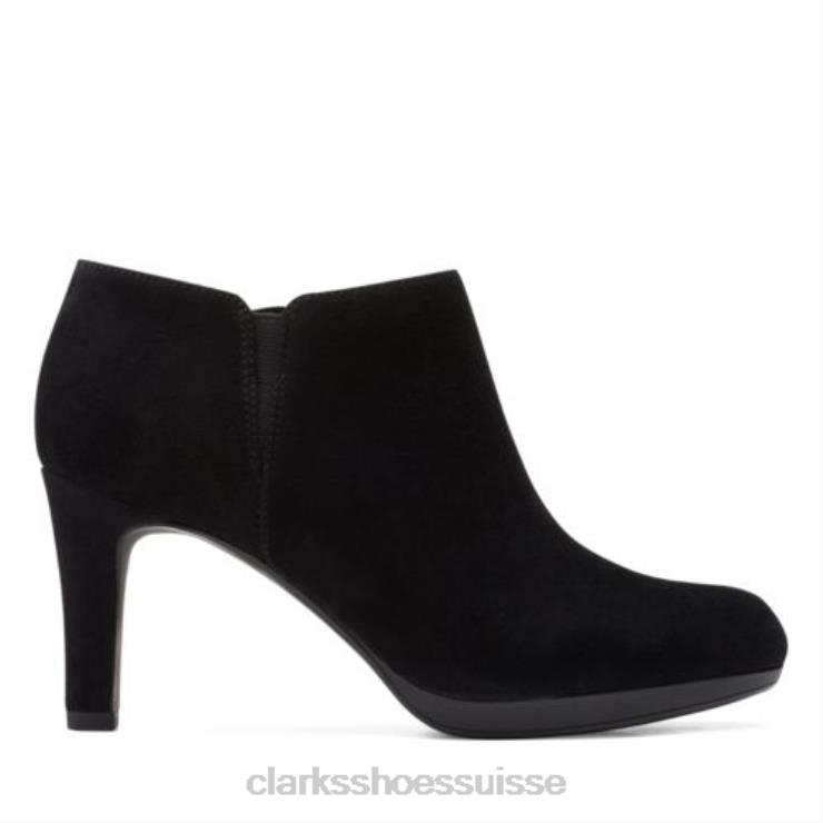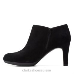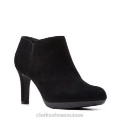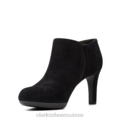 une bottine pour femme élégante et élégante conçue en daim noir. la tige de la robe chic repose sur un talon haut de 8,5 cm et une plateforme sculptée pour un impact supplémentaire