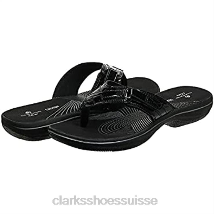 Tongs Breeze Sea vernies synthétiques noires pour femmes Clarks femmes N6R8B2044 Clarks vernis synthétique noir