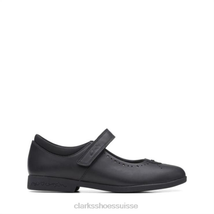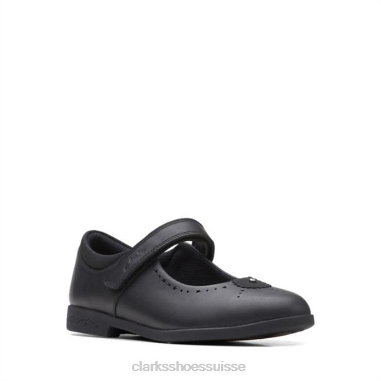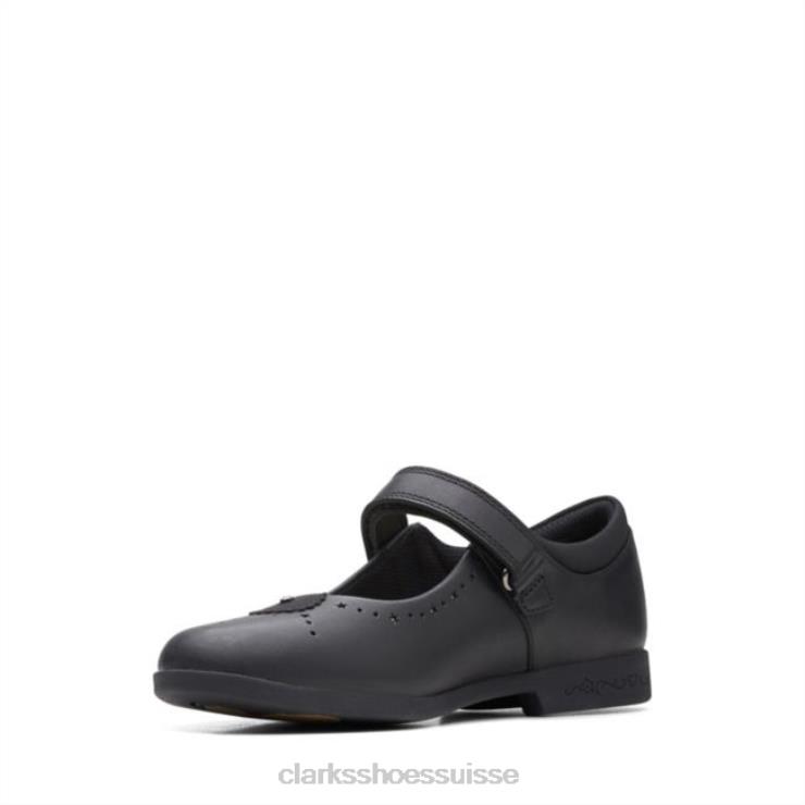 Clarks Black Leather Magic Step Bar Cuir noir plus ancien enfants N6R8B5817 Clarks Cuir noir