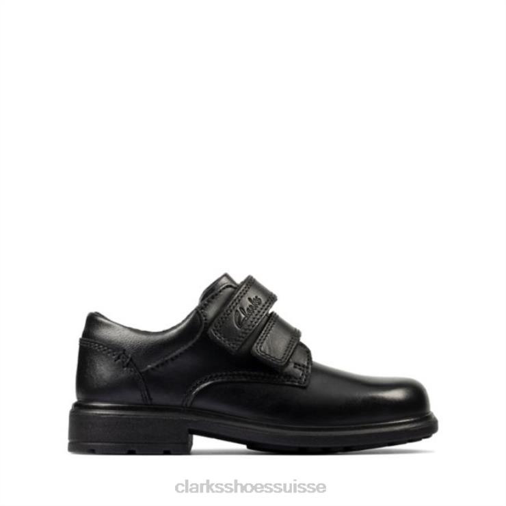 Clarks en cuir noir Remi Pace pour enfant en cuir noir enfants N6R8B5908 Clarks Cuir noir