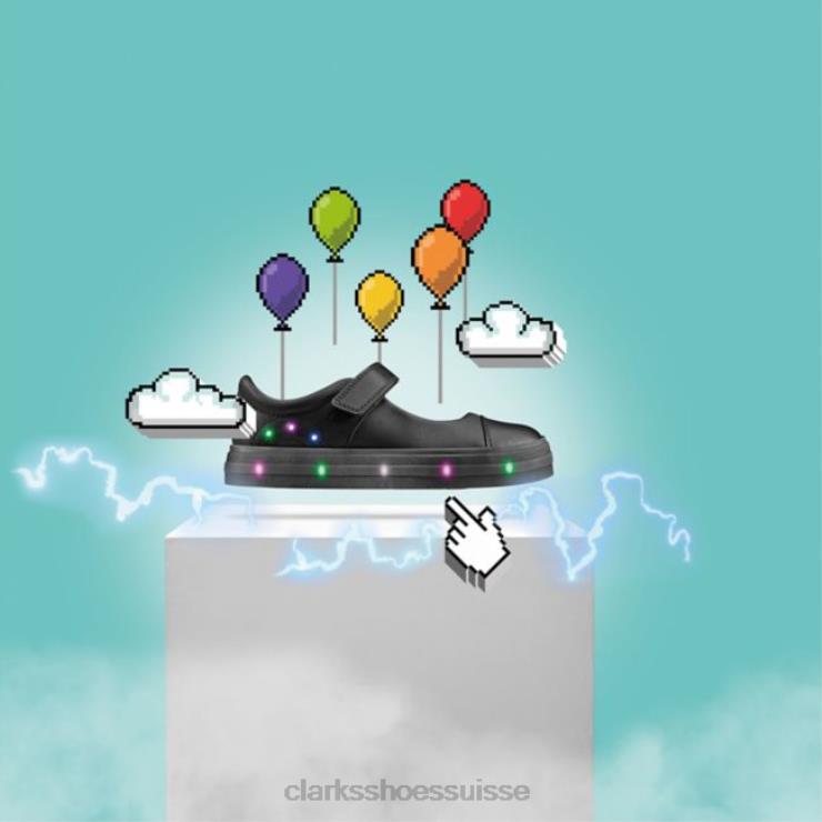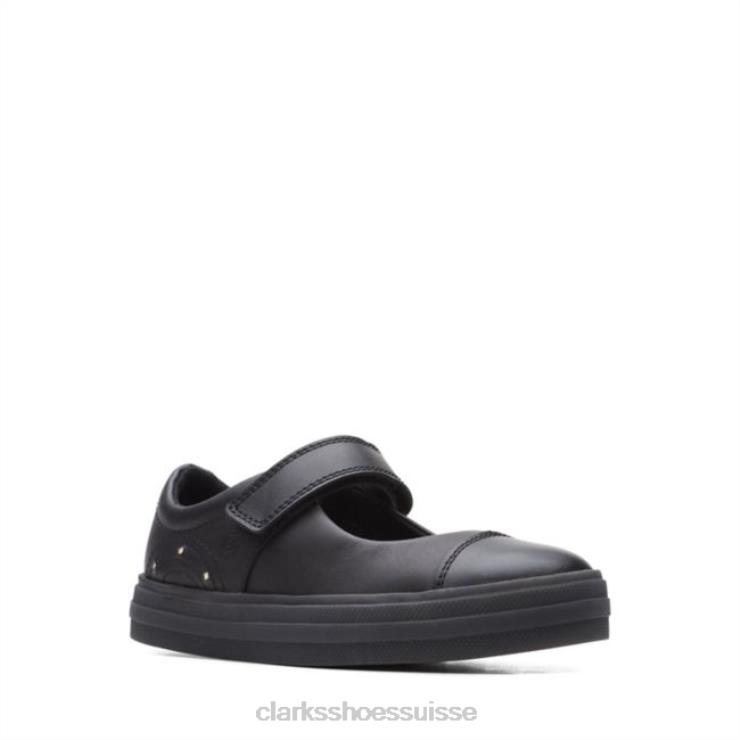 Clarks Flare Shine Kid cuir noir cuir noir enfants N6R8B5874 Clarks Cuir noir