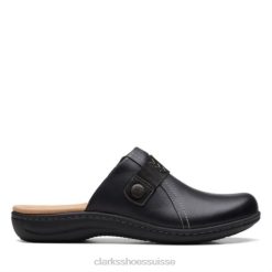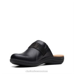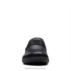 Sandale compensée Un Plaza Slide en cuir noir pour femme Clarks femmes N6R8B92 Clarks Cuir noir