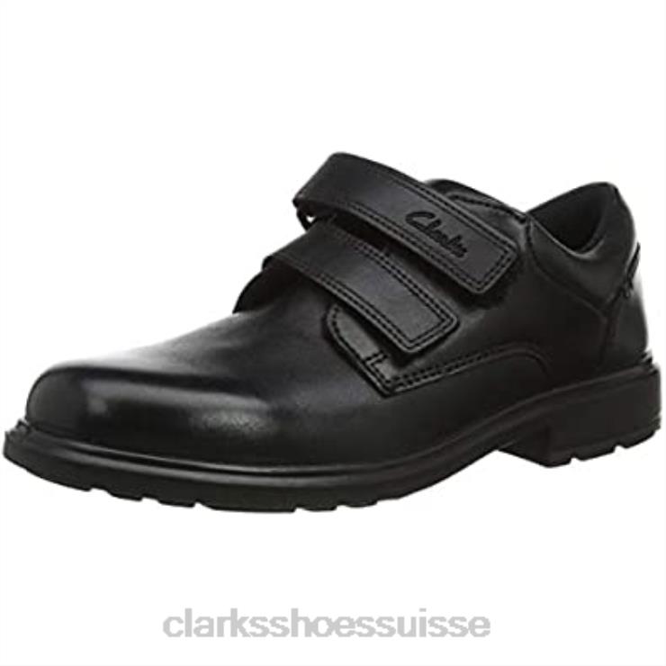 Clarks Remi Pace K Chaussures d’uniforme scolaire coupe large pour hommes Noir Hommes N6R8B1138 Clarks Cuir noir