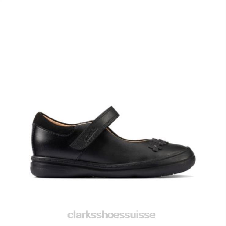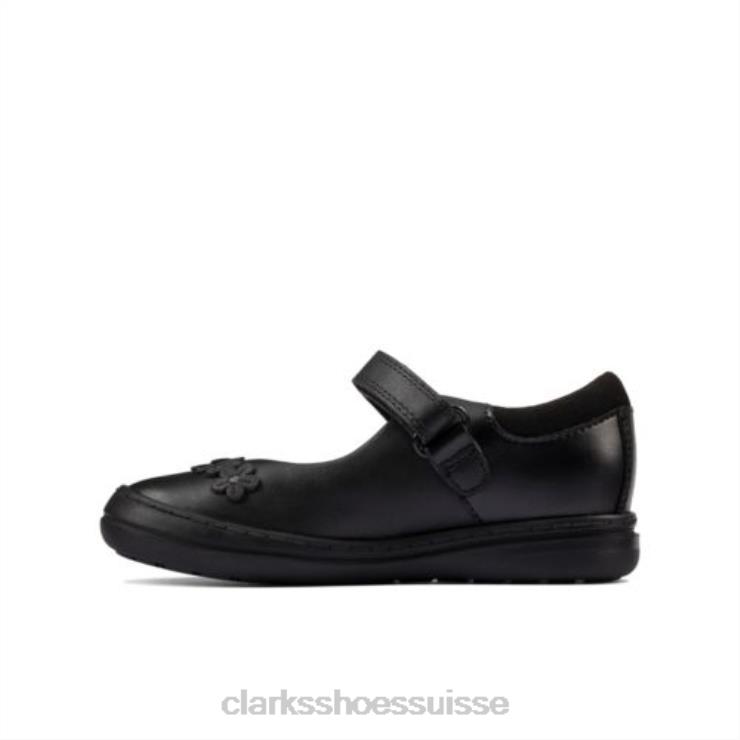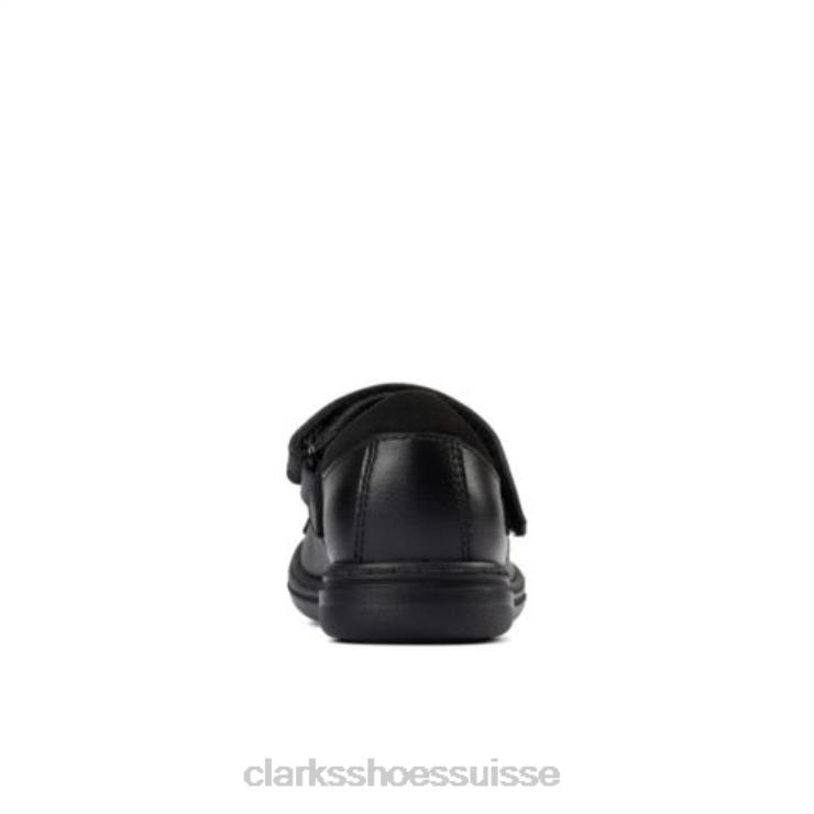 Clarks Scooter en cuir noir Jump Inf F Fit enfants N6R8B4640 Clarks Cuir noir