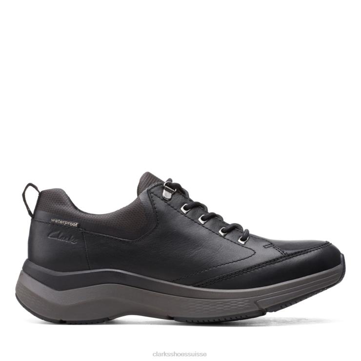 clarks wave 20 vibe cuir noir noir Hommes N6R8B6754 Clarks Cuir noir