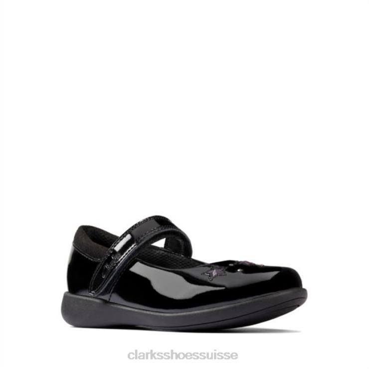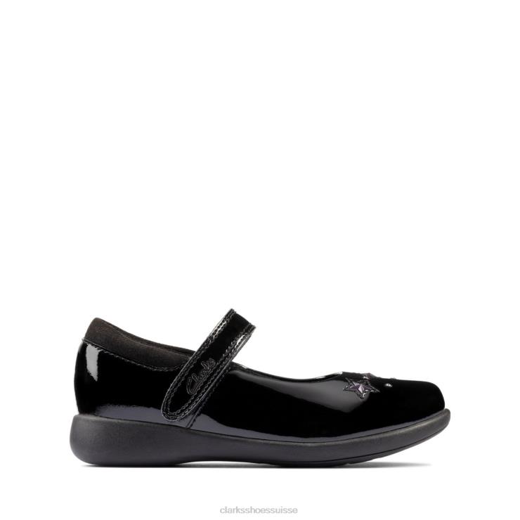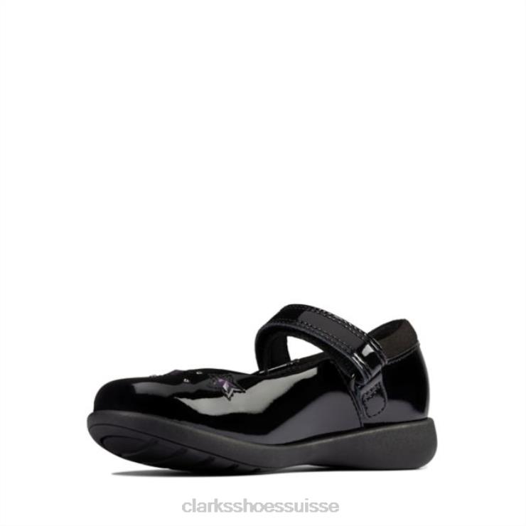 Clarks Black Patent Etch Spark Inf Fit enfants N6R8B4641 Clarks vernis noir