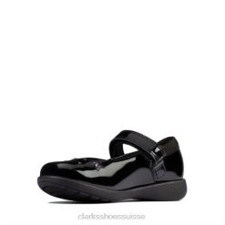 Clarks Crown Wish Inf F Fit Noir Verni enfants N6R8B4642 Clarks vernis noir